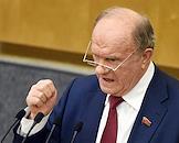 Пленарное заседание Государственной думы (ГД) России. Лидер КПРФ, член комитета ГД России по делам Содружества Независимых Государств, евразийской интеграции и связям с соотечественниками Геннадий Зюганов во время заседания.
