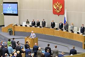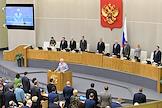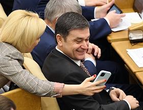 Пленарное заседание Государственной думы (ГД) России. Первый заместитель председателя ГД России по экологии, природным ресурсам и охране окружающей среды Вячеслав Фетисов (в центре) во время заседания.