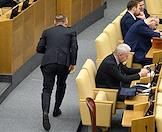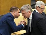 Пленарное заседание Государственной думы (ГД) России. Председатель комитета ГД России по труду, социальной политике и делам ветеранов Ярослав Нилов (слева) и член комитета ГД России по государственному строительству и законодательству Дмитрий Вяткин (справа) во время заседания.