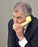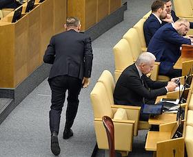 Пленарное заседание Государственной думы (ГД) России. Заместитель председателя комитета ГД России по развитию гражданского общества, вопросам общественных и религиозных объединений Владимир Шаманов (справа) перед началом заседания.