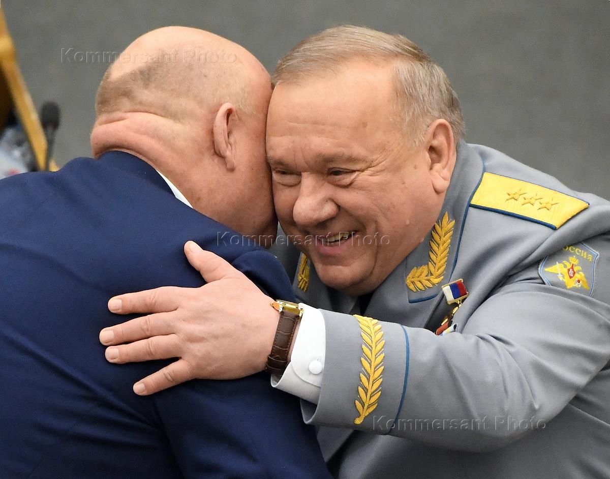Пленарное заседание Государственной думы (ГД) России. Председатель комитета ГД России по обороне Андрей Картаполов (слева) перед началом заседания.