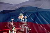 Митинг-концерт, посвященный Дню защитника Отечества, на площади имени Ленина. Лидер группы "Рондо" Александр Иванов Александр, во время митинга-концерта.