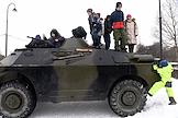 Акция, посвященная празднованию Дня защитника Отечества, на Аллее Героев в Московском парке Победы. Выставка автомобильной техники, спецоборудования и вооружения.