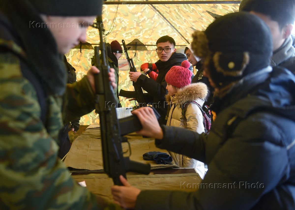 Акция, посвященная празднованию Дня защитника Отечества, на Аллее Героев в Московском парке Победы.