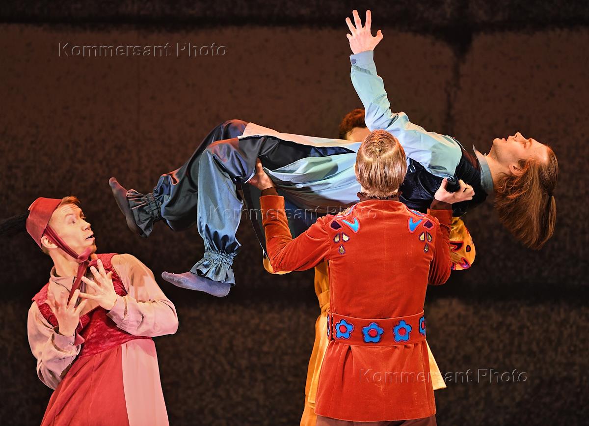 Премьера вечера одноактных балетов "Танц NUVO. Кейхель / Кононова / Щеклеина", созданных для танцевальной труппы "Балет Москва" в составе Театра "Новая Опера". Спектакль "Этот великолепный век" хореографа Ирины Кононовой саунд-дизайнер Эдуард Козловский на сцене Театра "Новая Опера". Артисты балета слева направо: Антон Шишкин, Максим Исаков и Илья Громов во время спектакля.