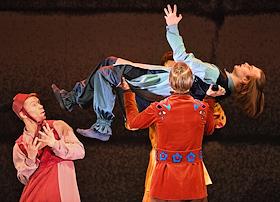 Премьера вечера одноактных балетов "Танц NUVO. Кейхель / Кононова / Щеклеина", созданных для танцевальной труппы "Балет Москва" в составе Театра "Новая Опера". Спектакль "Этот великолепный век" хореографа Ирины Кононовой саунд-дизайнер Эдуард Козловский на сцене Театра "Новая Опера". Артисты балета слева направо: Антон Шишкин, Максим Исаков и Илья Громов во время спектакля.