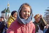 "Широкая Масленица 2023". Празднование Масленицы в парке "Аркадия". Жанровая фотография. Девочка во время масленичных гуляний.