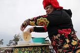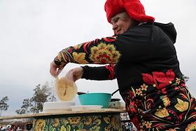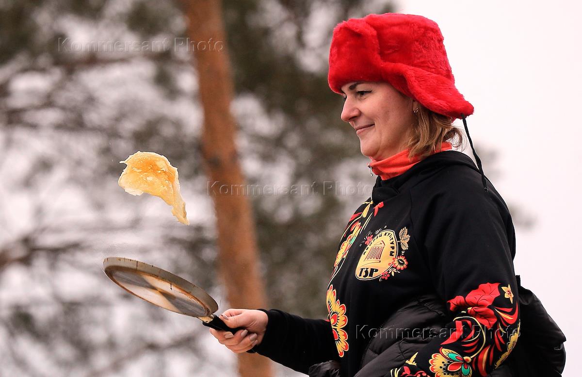 "Широкая Масленица 2023". Празднование Масленицы в Волгограде. Жанровая фотография. Масленичные гуляния в Центральном парке культуры и отдыха (ЦПКиО). Приготовление блинов.