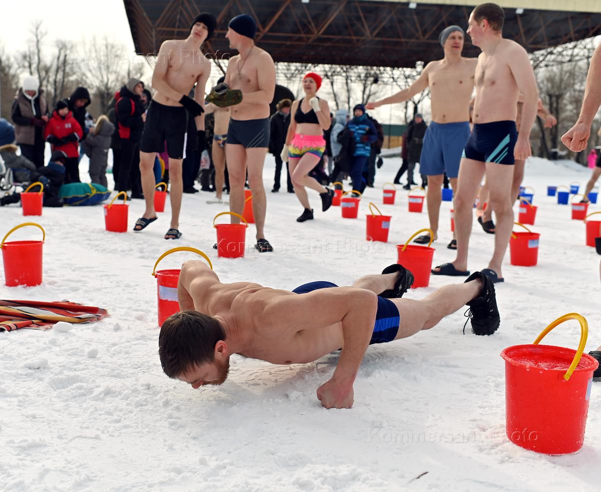 Традиционная весенняя акция "Пробуждение" - обливание холодной водой из ведра для всех закаливающихся любителей ЗОЖ на "Зеленом Острове".