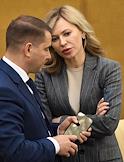 Пленарное заседание Государственной думы (ГД) России. Председатель комитета ГД России по контролю Олег Морозов (слева) и председатель комитета ГД России по развитию гражданского общества, вопросам общественных и религиозных объединений Ольга Тимофеева (справа) во время заседания.