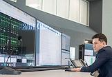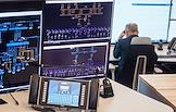 Церемония ввода в работу Центра управления сетями и дистанционного запуска энергообъектов по адресу шоссе Революции, д.51, к.3. Жанровая фотография. Сотрудник центра во время работы за компьютером.