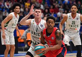 Единая лига ВТБ 2022/2023. Матч по баскетболу между командами ЦСКА (Москва) - УНИКС (Казань) на стадионе "Мегаспорт".