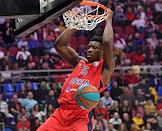 Единая лига ВТБ 2022/2023. Матч по баскетболу между командами ЦСКА (Москва) - УНИКС (Казань) на стадионе "Мегаспорт". Игрок команды УНИКС Игрок команды УНИКС Джален Рейнольдс (справа) во время матча.
