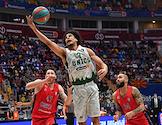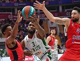 Единая лига ВТБ 2022/2023. Матч по баскетболу между командами ЦСКА (Москва) - УНИКС (Казань) на стадионе "Мегаспорт". Игрок команды ЦСКА Ливио Жан-Шарль (в центре) во время матча.