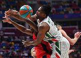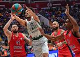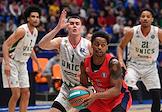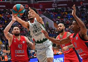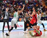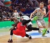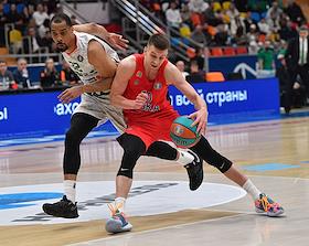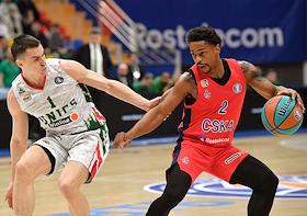 Единая лига ВТБ 2022/2023. Матч по баскетболу между командами ЦСКА (Москва) - УНИКС (Казань) на стадионе "Мегаспорт". Игрок команды ЦСКА Ливио Жан-Шарль (в центре) во время матча.