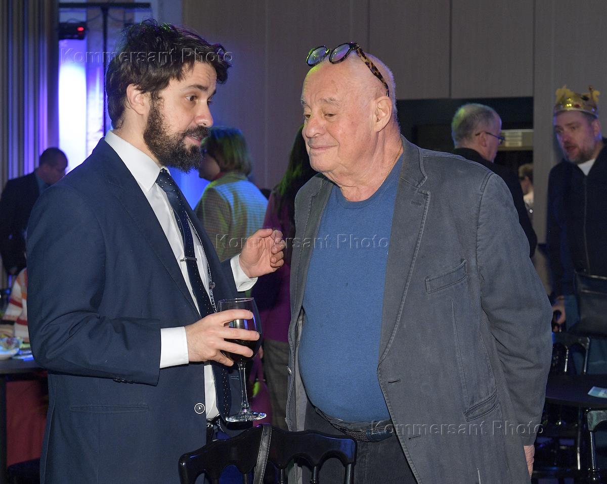 Благотворительное мероприятие "Пуримшпиль в стиле хип-хоп", организованный Российским еврейским конгрессом (РЕК), в мемориальной синагоге на Поклонной горе. Журналист Александр Минкин (слева) на мероприятии.