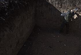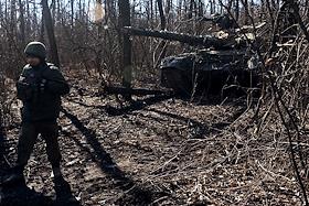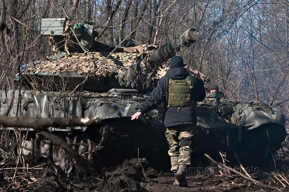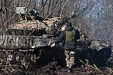 Ситуация в Донецкой Народной Республике (ДНР) во время проведения специальной военной операции Вооруженных Сил России. Марьинское направление ДНР. Танкисты Южного военного округа на боевой позиции.