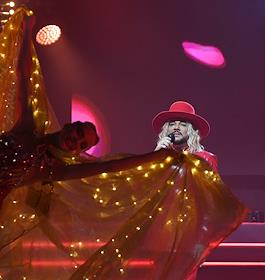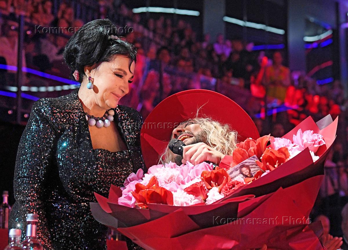 Гала-шоу Чемпионата России по художественной гимнастике во Дворце гимнастики Ирины Винер-Усмановой. Президент Федерации художественной гимнастики России Ирина Винер-Усманова (слева) и певец Филипп Киркоров (справа) во время гала-шоу.