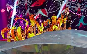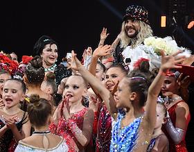 Гала-шоу Чемпионата России по художественной гимнастике во Дворце гимнастики Ирины Винер-Усмановой. Певец Филипп Киркоров (в центре) во время выступления на гала-шоу.