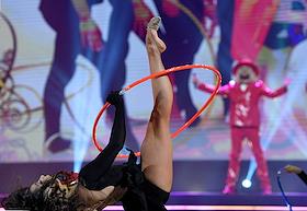 Гала-шоу Чемпионата России по художественной гимнастике во Дворце гимнастики Ирины Винер-Усмановой. Гимнастка Анна Попова во время исполнения упражнений с обручем на гала-шоу.