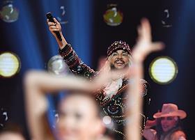 Гала-шоу Чемпионата России по художественной гимнастике во Дворце гимнастики Ирины Винер-Усмановой. Певец Филипп Киркоров во время выступления на гала-шоу.