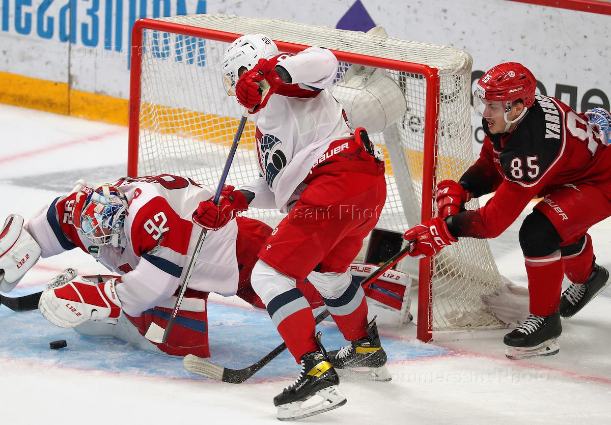 Kontinental Hockey League (KHL). Playoffs. 1/8 finals. Match between the teams "Vityaz" (Moscow region, Podolsk) and "Lokomotiv" (Yaroslavl) at the stadium "Arena "Balashikha" named after Y. Lyapkin".