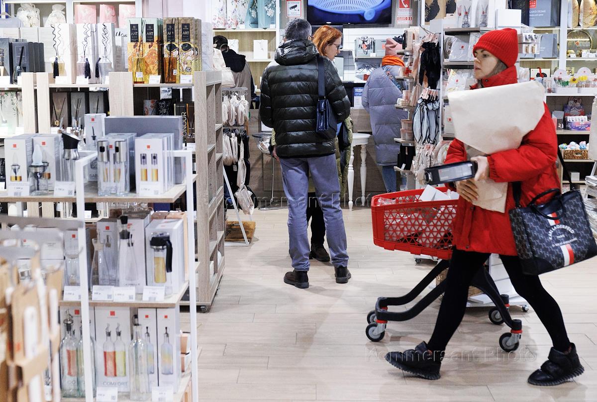 Екатеринбург накануне Международного женского дня (8 марта). Жанровая фотография. Покупатели в магазине.