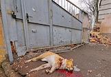 Ситуация в Донецке во время проведения специальной военной операции Вооруженных Сил России. Последствия обстрела Куйбышевского района. Убитая собака.