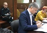 Заседание по делу владельца компании Орtima Development Альберта Худояна, обвиняемый в хищение акций компании "Авиасити" на сумму ущерба 3,74 млрд. рублей, в Тверском районном суде. Владелец компании Орtima Development Альберт Худоян (слева) и адвокат Сергей Чижиков (в центре) во время заседания суда.