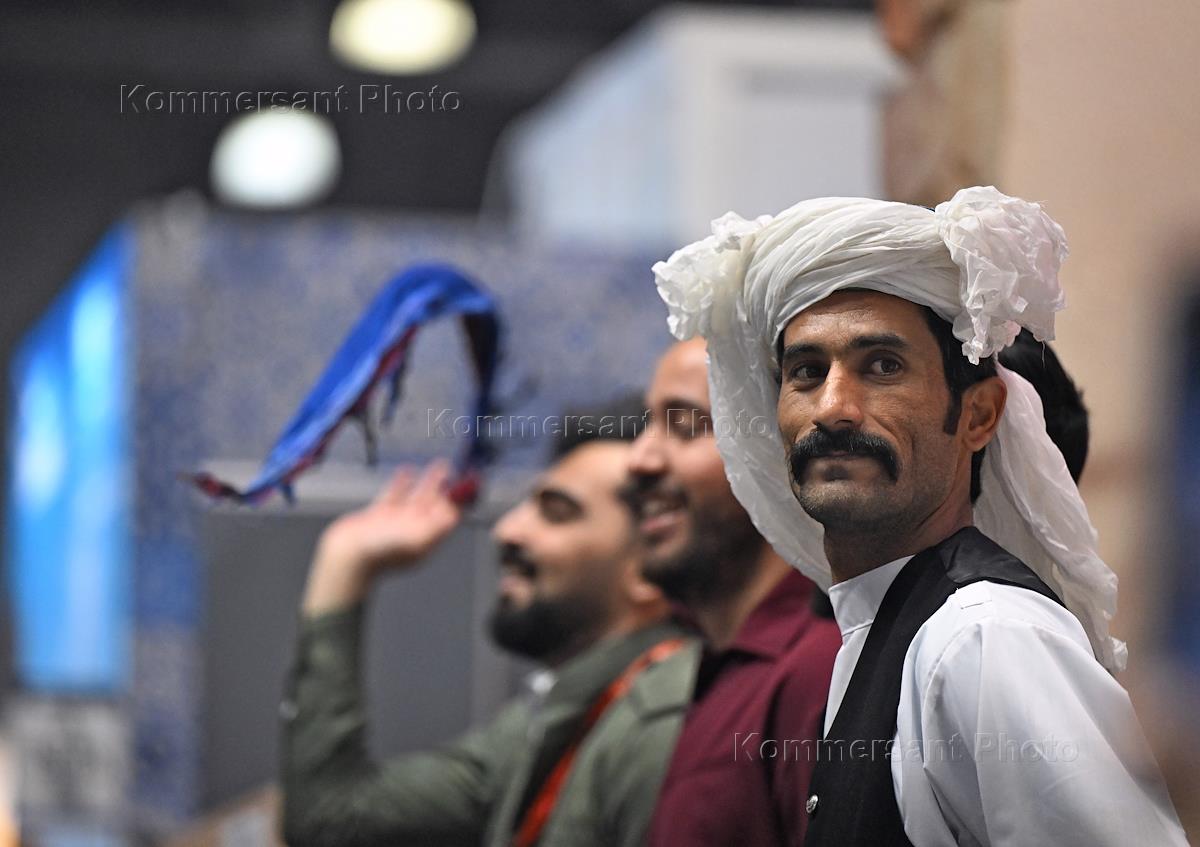 Церемония открытия "MITT 2023" 29-ой международной выставки туризма и индустрии гостеприимства (International Travel & Hospitality Show) в МВЦ "Крокус Экспо". Выступление самодеятельного ансамбля на выставке.