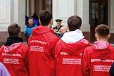 Праздничные пероприятия в честь девятой годовщины воссоединения Крыма и Севастополя с Россией. Участники всероссийского добровольческого молодежного общественного движения "Волонтерская рота" во время выступления депутата Законодательного собрания Санкт-Петербурга Александра Ржаненкова.