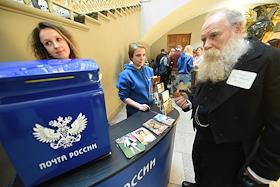Праздничные мероприятия в Михайловском дворце в честь 125-летия со дня своего открытия Русского музея. Реконструкторы в аутентичных костюмах конца XIX столетия во время встречи посетителей.