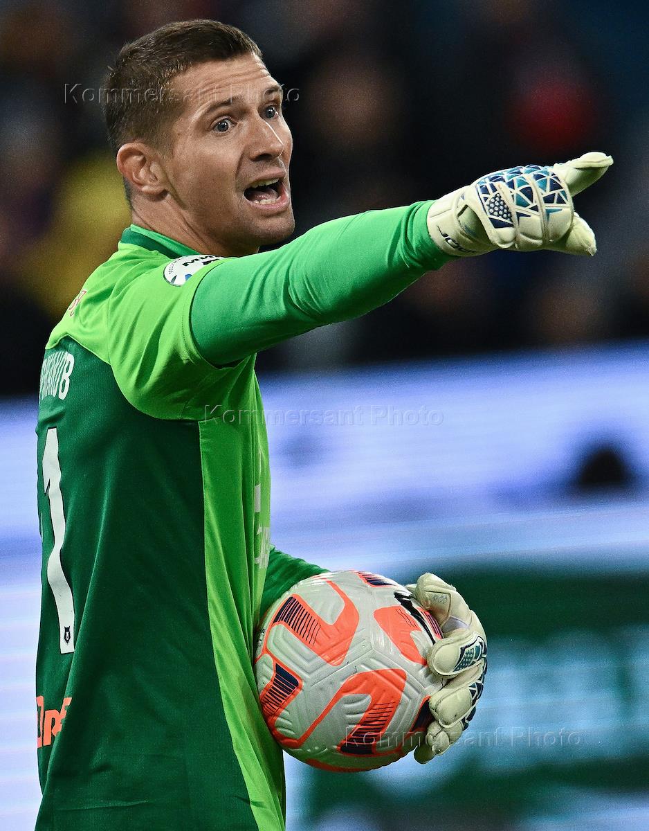 Российская Премьер-Лига (РПЛ). МИР - Чемпионат России по футболу 2022/2023. 20-й тур. Матч между командами ЦСКА (Москва) - "Зенит" (Санкт-Петербург) на стадионе "ВЭБ Арена". Вратарь команды "Зенит" Михаил Кержаков во время матча.