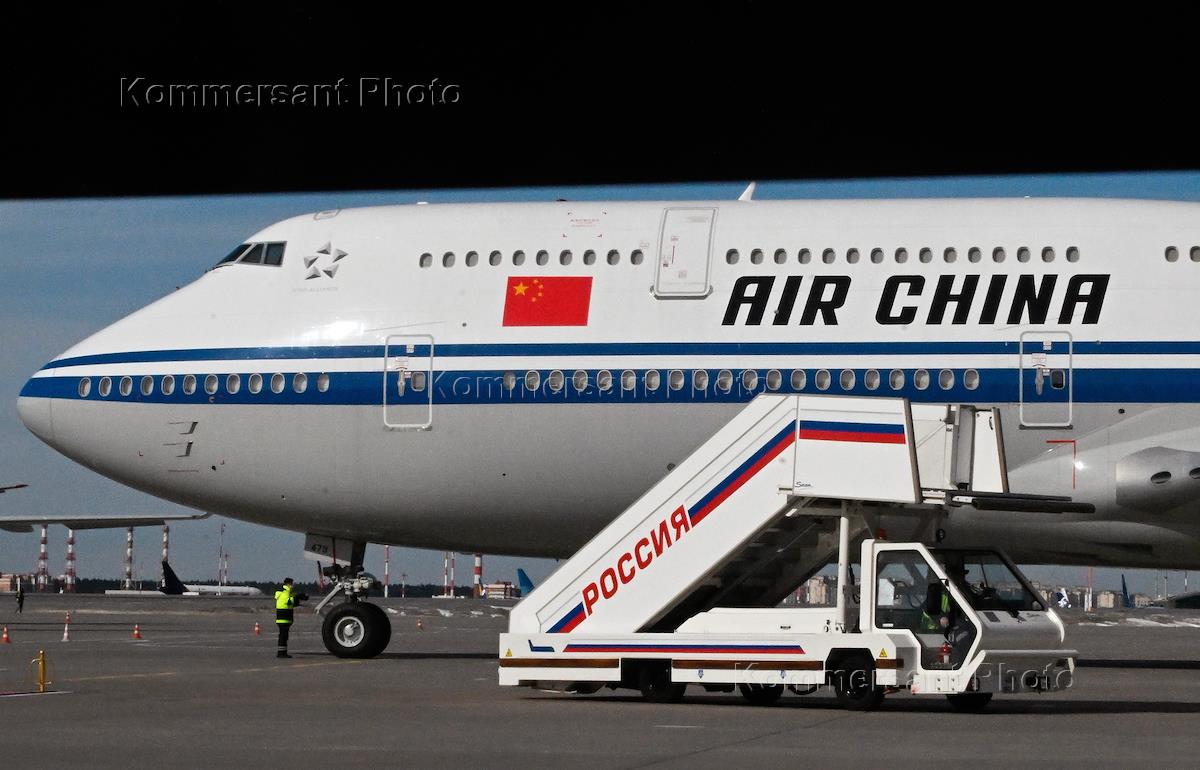 Церемония прилета председателя Китайской Народной Республики Си Цзиньпина в аэропорт "Внуково-2". Жанровая фотография. Самолет авиакомпании Air China на поле аэропорта.
