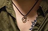 Слушание в отношении Виктории Петровой, фигурантки уголовного дела по статье о распространении "фейков" о Вооруженных Силах России, в Калининском районном суде. Жанровая фотография. Подвеска в виде наручников с надписью Freedom (свобода) на шее девушке в коридоре суда.