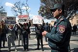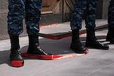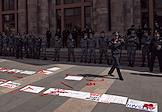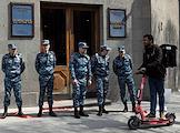 Акция протеста АРФ "Дашнакцутюн" на площади перед зданием правительства Армении в связи со 100-дневной блокадой представителями Азербайджана Лачинского коридора (единственной дороги, связывающую Нагорный Карабах с Арменией). Сотрудники полиции в оцеплении во время акции.