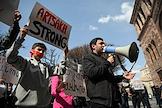 Акция протеста АРФ "Дашнакцутюн" на площади перед зданием правительства Армении в связи со 100-дневной блокадой представителями Азербайджана Лачинского коридора (единственной дороги, связывающую Нагорный Карабах с Арменией). Участники акции.