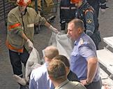 Прокурор Москвы Юрий Семин (в центре) на месте взрыва на рынке "Евразия" - часть Черкизовского рынка, который расположен по адресу Сиреневый бульвар, дом 2. Взрыв произошел в 10.35 утра, сработало безоболочное взрывное устройство, погибли десять человек, среди них двое детей, 31 человек доставлен в больницу. В результате взрыва обрушились конструкции на площади 200 квадратных метров. Возбуждено уголовное дело по статье убийство.