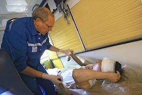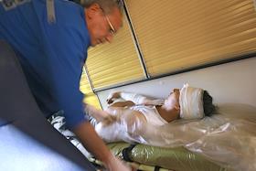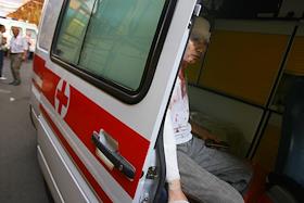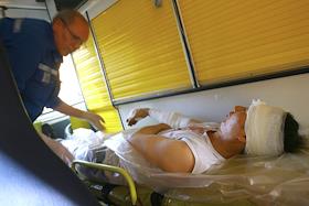 Госпитализация пострадавшего во время взрыва на рынке "Евразия" - часть Черкизовского рынка, который расположен по адресу Сиреневый бульвар, дом 2 в автомобиле скорой медицинской помощи. Взрыв произошел в 10.35 утра, сработало безоболочное взрывное устройство, погибли десять человек, среди них двое детей, 31 человек доставлен в больницу. В результате взрыва обрушились конструкции на площади 200 квадратных метров. Возбуждено уголовное дело по статье убийство.