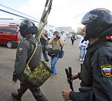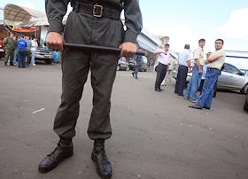 Сотрудники правоохранительных органов в оцеплении места взрыва на рынке "Евразия" - часть Черкизовского рынка, который расположен по адресу Сиреневый бульвар, дом 2. Взрыв произошел в 10.35 утра, сработало безоболочное взрывное устройство, погибли десять человек, среди них двое детей, 31 человек доставлен в больницу. В результате взрыва обрушились конструкции на площади 200 квадратных метров. Возбуждено уголовное дело по статье убийство.