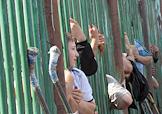 Люди смотрят через ограждение на место взрыва рынка "Евразия" - часть Черкизовского рынка, который расположен по адресу Сиреневый бульвар, дом 2. Взрыв произошел в 10.35 утра, сработало безоболочное взрывное устройство, погибли десять человек, среди них двое детей, 31 человек доставлен в больницу. В результате взрыва обрушились конструкции на площади 200 квадратных метров. Возбуждено уголовное дело по статье убийство.