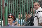 Люди смотрят через ограждение на место взрыва рынка "Евразия" - часть Черкизовского рынка, который расположен по адресу Сиреневый бульвар, дом 2. Взрыв произошел в 10.35 утра, сработало безоболочное взрывное устройство, погибли десять человек, среди них двое детей, 31 человек доставлен в больницу. В результате взрыва обрушились конструкции на площади 200 квадратных метров. Возбуждено уголовное дело по статье убийство.