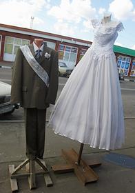 Манекены свадебных нарядов жениха и невесты стоят на тротуаре рынка "Евразия" - часть Черкизовского рынка, который расположен по адресу Сиреневый бульвар, дом 2. На рынке произошел взрыв в 10.35 утра, сработало безоболочное взрывное устройство, погибли десять человек, среди них двое детей, 31 человек доставлен в больницу. В результате взрыва обрушились конструкции на площади 200 квадратных метров. Возбуждено уголовное дело по статье убийство.