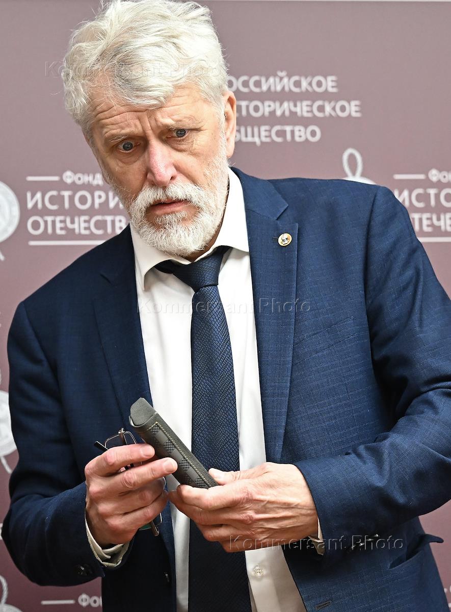 Заседание "круглого стола" об истории Севастополя и его месте в истории России, приуроченное к девятой годовщине воссоединения Крыма и Севастополя с Россией в Доме Российского исторического общества. Директор Института российской истории РАН Юрий Петров во время заседания.
