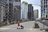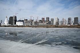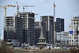 Виды Москвы. Жилищное строительство на территории бывшего Тушинского аэродрома. Жанровая фотография. Строящийся жилой комплекс "Клубный город на реке Primavera".