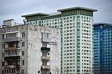 Виды Москвы. Жилищное строительство на территории бывшего Тушинского аэродрома. Жанровая фотография. Строящийся жилой комплекс (ЖК) Holland park ("Холланд парк").
