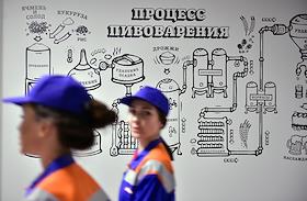 Новосибирский завод АО "АБ ИнБев Эфес" (AB InBev Efes) по производству пива. Церемония запуска пивоваренной компания AB InBev Efes совместно с производителем стеклотары "Сибстекло" первую в России производственную линию пива в сверхлегкой стеклянной бутылке.