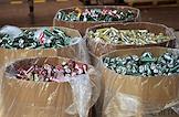 Новосибирский завод АО "АБ ИнБев Эфес" (AB InBev Efes) по производству пива. Церемония запуска пивоваренной компания AB InBev Efes совместно с производителем стеклотары "Сибстекло" первую в России производственную линию пива в сверхлегкой стеклянной бутылке. Жанровая фотография. Контейнеры с пустыми алюминиевыми банками пива разных сортов.