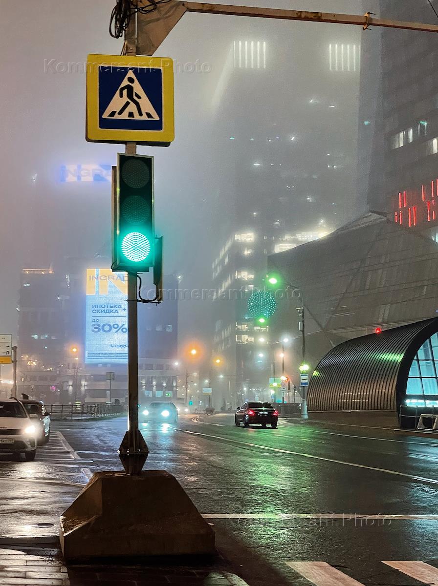 Жанровая фотография. Светофор на пешеходном переходе Московского международного делового центра "Москва-Сити".