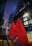 Жанровая фотография. Буква "М" - логотип Московского метрополитена на территории Московского международного делового центра "Москва-Сити".
